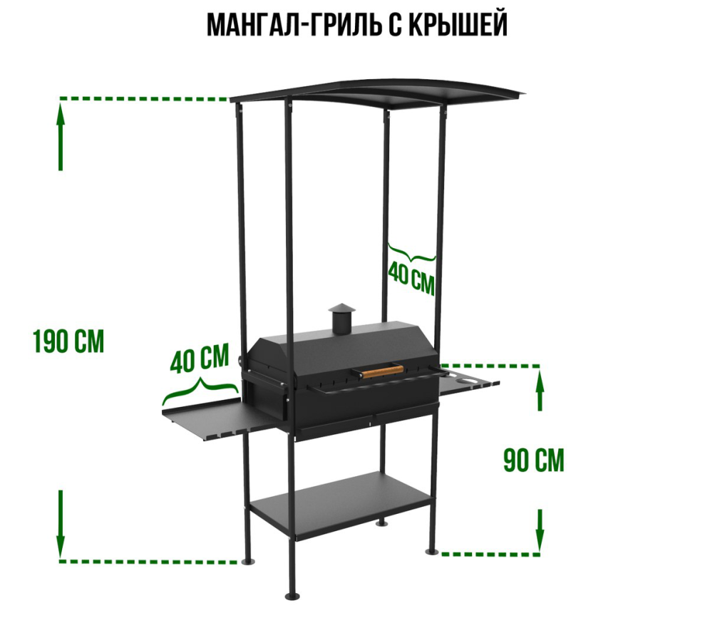 Мангал с крышей Лайт 1700х1250х2300 мм