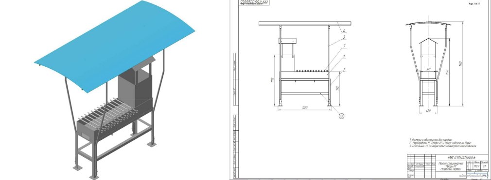 Мангал с крышей Лайт 1700х1250х2300 мм схема