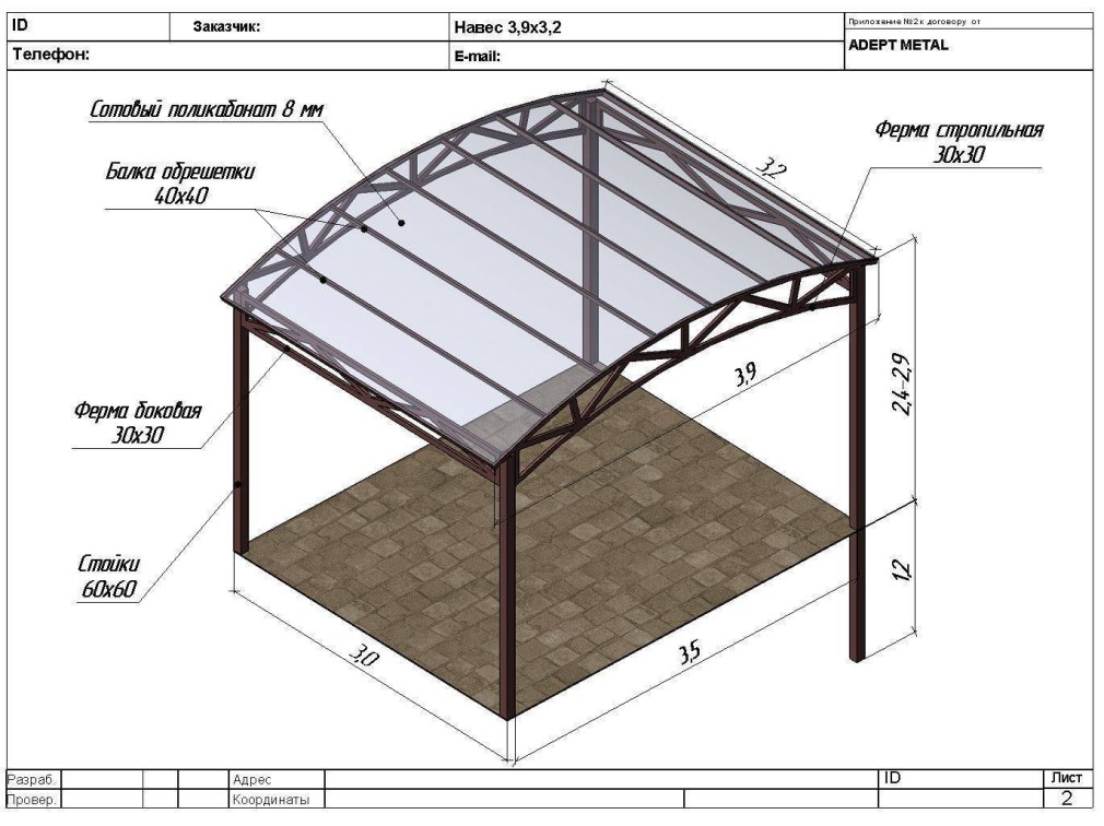 Навес из поликарбоната 3х4 чертеж